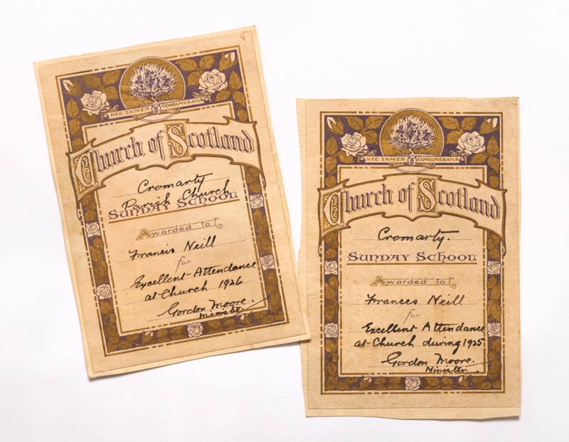 From:Cromarty Courthouse MuseumName/Title2x Excellent attendance certificates Cromarty Parrish SchoolAbout this object2 x Excellent Attendance Certificates Cromarty Parish SchoolObject TypeDocumentsObject numberCRMCH.2000.03Copyright LicenceAll rights reserved