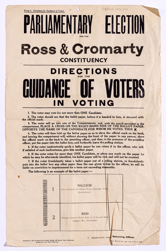 From:Cromarty Courthouse MuseumName/TitleElection poster, Ross & Cromarty 1945About this objectElection poster, Ross & Cromarty 1945Object TypeDocumentsObject numberCRMCH.2023.10Copyright LicenceAll rights reserved