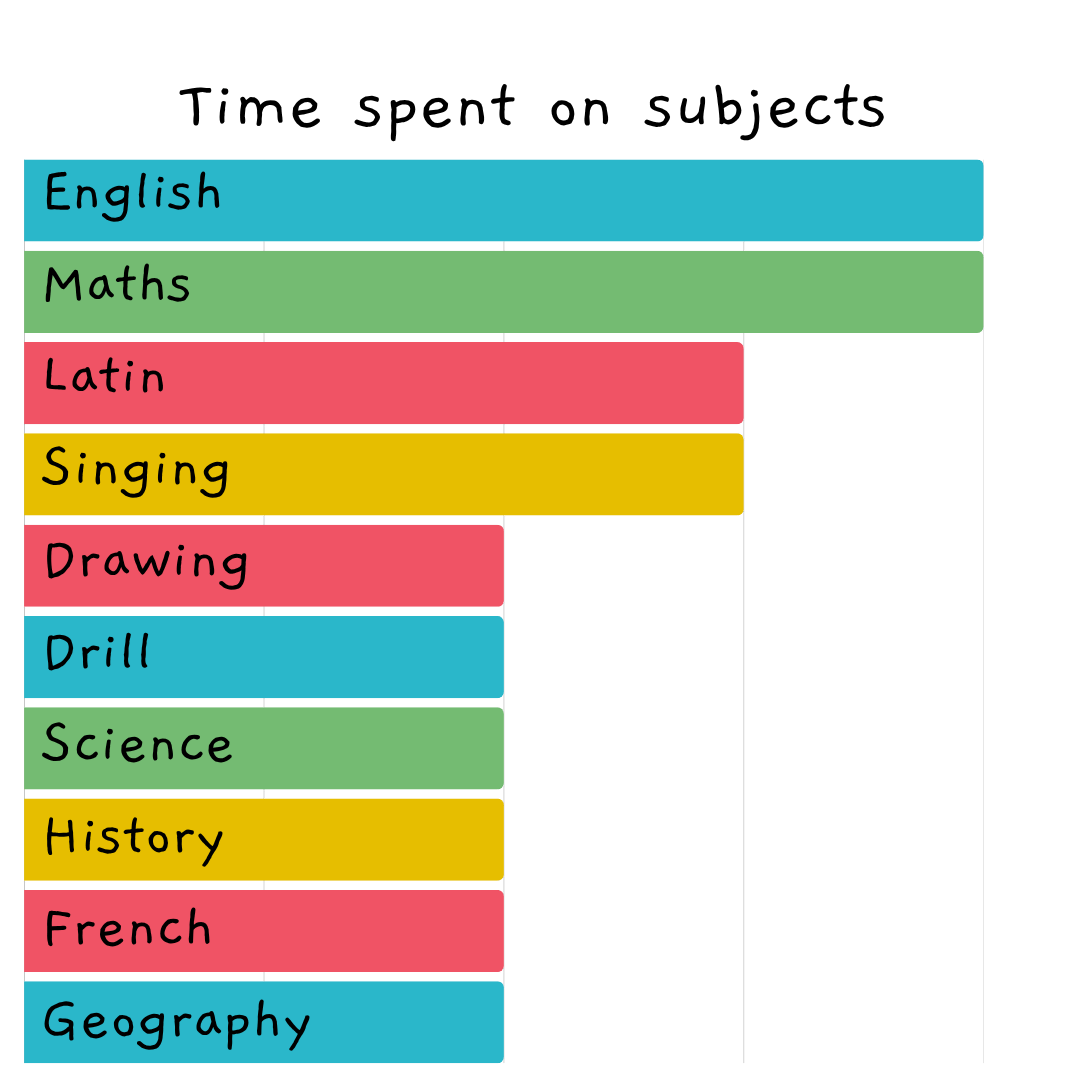 During this period, 10 main subjects were studied. Needlework, cookery, paper folding, and cardboard modelling were later added. After the outbreak of WWI, all needlework classes were devoted to knitting hats and scarves for troops.