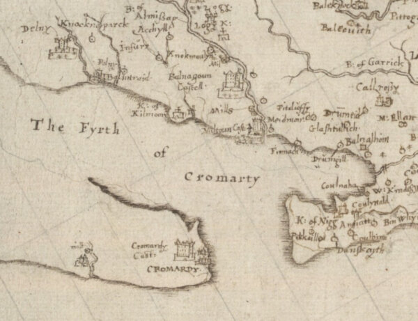Timothy Pont’s map of Tarbert Ness (above, circa 1590) shows the burgh of Cromarty below the castle. The parish church became Presbyterian, a grammar school was established and the fishing industry expanded.  The distinctive Fishertoun dialect (which retained some of the oldest forms of the Scots language) suggests that either the fisher folk had moved to Cromarty from elsewhere in Scotland or had kept alive some very old forms of Scots interwoven with words from Norse and Gaelic to create a unique dialect.